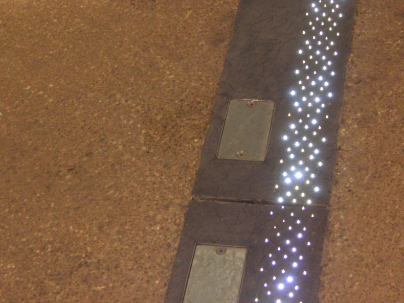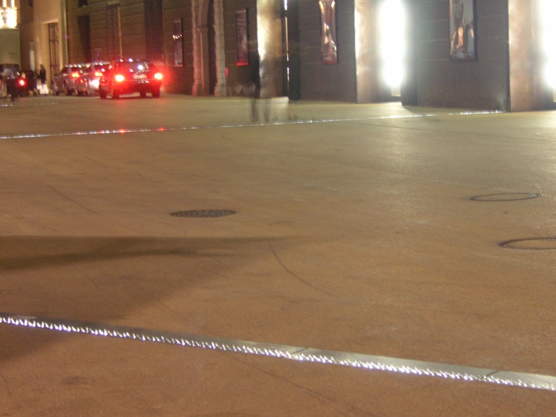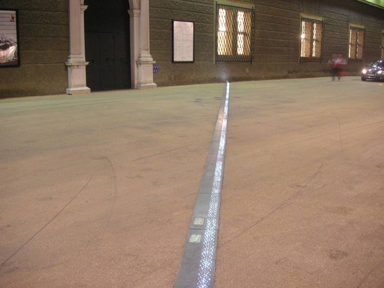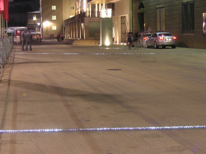 Nachdem die Versuche positiv waren, wurde 2006 das Projekt umgesetzt und ca. 100 lfm Lichtblöcke mit gesamt 16000 Lichtpunkten in die Strasse eingebaut, wobei auch der Wunsch der Gestaltung berücksichtigt wurde, dass alle Enden der LWL Reihenweise im Austrittwinkel so platziert wurden, dass das Licht in einem vorgegebenen Winkel aus dem Fertigteil strahlt, sodass beim begehen der Strasse eine Art Kippeffekt vom Licht entsteht.
